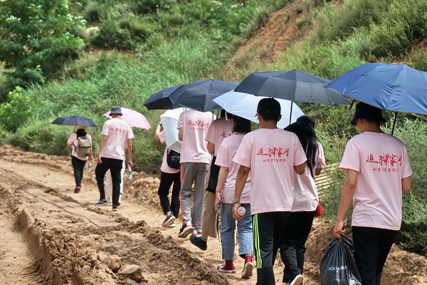 在梁家河,我們團隊一行人又沿著習近平總書記曾經走過的知青之路,重走勞動山路,踏訪知青足跡。約880多級臺階,越往上走,山路越陡,路越難走,烈日當頭,但大家還是堅持要走下去。一路上相互扶持,一步一個腳印地前進。在山頂我們遇上了善良的老奶奶,她說習近平總書記當時就是在這個山上種蘋果,村里能富起來都是因為習近平總書記的帶領,沒有他就沒有現在富裕的梁家河村。