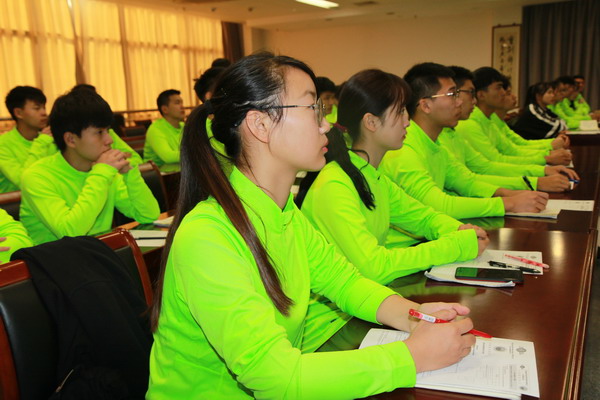 在學習完理論知識后,我們到場地進行了實踐,將理論運用到實踐中。自己做一個裁判,為運動員打分仲裁。或許會遇到各種各樣的困難,或許會犯許許多多的錯誤,但我們會努力的。直到成為一名優秀的志愿者,只為了我們重要的世錦賽。