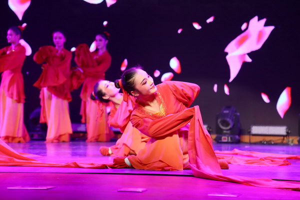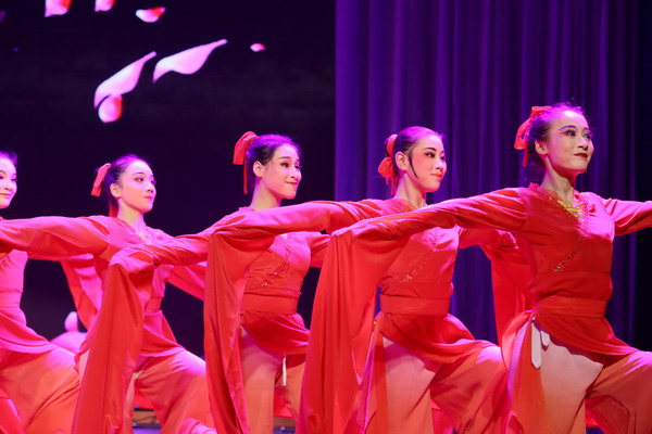 演出在戲曲舞蹈《袖舞翩躚》中落下帷幕。長水袖是中國傳統戲曲的特技之一,結合戲曲的長水袖和舞蹈的柔美,在京胡及打擊樂的旋律中起伏有致、舒緩柔美,展示著戲曲與舞蹈的獨特魅力。