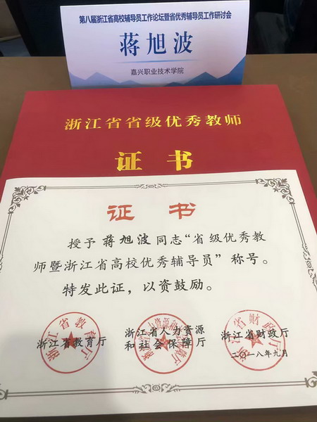 我校蔣旭波老師榮獲省級優秀教師暨優秀輔導員榮譽稱號