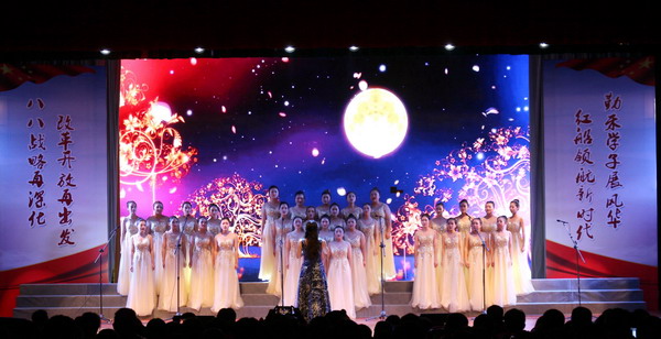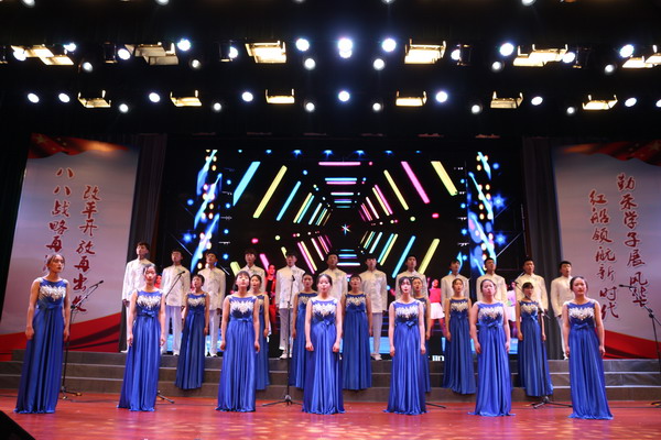 隨后,伴隨著學院啦啦操舞蹈隊熱情四射、青春昂揚的的動感韻律,合唱比賽進入了下半場。機電與汽車學院“兄弟合唱團”、工商與旅游學院“紅帆合唱團”、信息技術學院“勝羽合唱團”著裝整齊,朝氣蓬勃,依次登臺,深情演唱,《我的中國心》《天路》《青春舞曲》《國家》《在燦爛陽光下》《打起手鼓唱起歌》等一首首膾炙人口的經典曲目,帶領在場師生重溫了祖國在黨的領導下40年來日新月異的變化,凝聚了思想,鼓舞了斗志,為實現中華民族偉大復興不懈奮斗!最后,學院“勤禾合唱團”慷慨激昂,以情動人,以一曲《春天的故事》為整場大合唱比賽畫上了圓滿的句號,用嘹亮歌聲歌頌祖國、歌頌黨、歌頌新時代!
