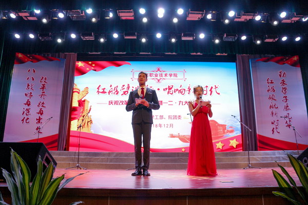 12月6日,由學工部、團委主辦的“紅船劈波行?唱響新時代”慶祝改革開放四十周年暨一二?九大合唱比賽在報告廳隆重舉行,學校黨委委員、副院長章康龍,各二級學院黨總支書記,宣傳部、學工部、團委等相關負責人出席現場,與近600名師生共同欣賞了本次演出。