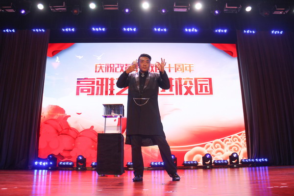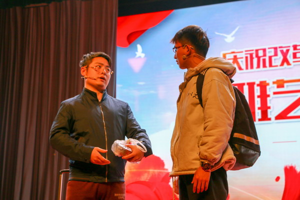 舞者在《青春風華》激揚的旋律下,和著婀娜的舞姿展示了中國的蓬勃朝氣與生機活力,出場便帶給觀眾震撼的視聽感受。香港國際音樂節金獎獲得者徐怡瑩帶來的《冬天里的一把火》當即燃燒全場。原創情景劇《文明協奏曲》以“文明出行,安全第一”為主題,融合當下文明事件、交通熱點、社會風尚,通過風趣的表演、詼諧的語言和真實而富有感染力的對白呼吁大家禮讓斑馬線,文明過馬路,排隊守秩序,禮儀待賓客,改正不文明行為。語言是文明的集中表達,相聲《幸福生活》用詼諧幽默的方式展現“美美與共”的和諧局面, 把臺下的觀眾逗得捧腹大笑。雜技《酒魂》、魔術《幻》以其精湛的技藝博得臺下的驚嘆連連、掌聲陣陣。在主持人和觀眾的互動下,百變大咖秀再次將現場氣氛推向高潮。