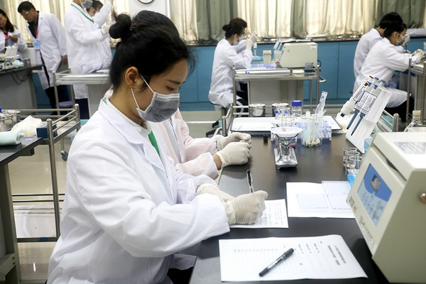 來自金華職業技術學院、溫州科技職業學院的9組選手共計18名同學參加本次大賽。競賽過程包括試驗器材準備、配制1%雞紅細胞懸液、血凝試驗、配制四單位病毒、血凝抑制試驗和抗體滴度報告六個部分,需要在180分鐘內完成比賽。我校學子在賽場上沉著應對、激烈比拼,取得了優異的成績。本次大賽共評出一等獎獲獎選手2名、二等獎4名、三等獎6名。
