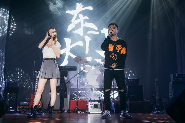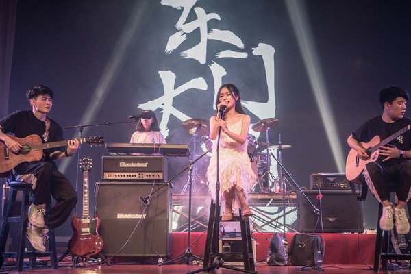 晚會伊始,伴隨著貝斯、鍵盤、架子鼓等樂器的節拍,舞臺中央聚光燈驟然亮起,東門大道樂隊正式登臺。主唱嗓音低沉且富有穿透力,《山海》前奏一響起,燃爆全場,現場觀眾隨著節奏一起搖擺。緊接著《斑馬,斑馬》、《烏克麗麗》、《我曾》幾首耳熟能詳的流行歌曲更是讓臺下觀眾們心跳加速、血脈噴張。一首《500 miles》,旋律優美動人,被東門大道樂隊演繹出了別樣的風格。主唱聲音低沉、歌聲深情動人、娓娓道來,使現場觀眾沉浸在動聽的歌聲中。《Loving strangers》、《不醉不會》、《love song》,一首首動聽的曲目,在樂手們的傾力彈奏下,主唱嘹亮的歌聲中,現場每一位觀眾熱血沸騰。