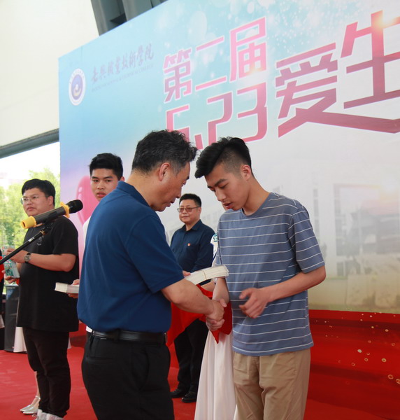 趙云院長作了熱情洋溢的講話宣布啟動,他表示,愛生,是師德的核心,是教師的天職。愛生自能受生愛,師仁方得為人師。學校將每年5·23設立為愛生節,就是要倡導每一位教師都能自覺堅持把“愛”的理念貫穿于教書育人、管理育人、服務育人的全過程;就是要進一步深化關愛學生的內涵,將愛護學生、關心學生和服務學業生落到實處。隨后,教師代表李朝敏老師講述了自己對“愛生”的感悟,工業設計171班的吳夢雨作了“知恩感恩 砥礪奮斗”的發言。