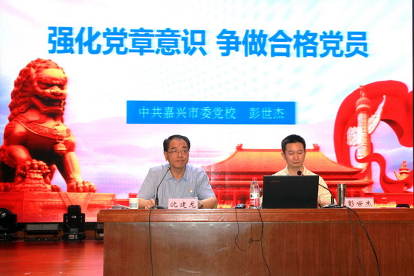 5月22日下午,我校組織全體教職工黨員在2號樓報告廳開展黨章學習專題培訓。特邀嘉興市委黨校基礎理論教研室副主任、嘉興市紅船宣講團成員彭世杰老師,做了題為“強化黨章意識 爭做合格黨員”的專題輔導。學校黨委副書記、紀委書記沈建龍主持培訓會。