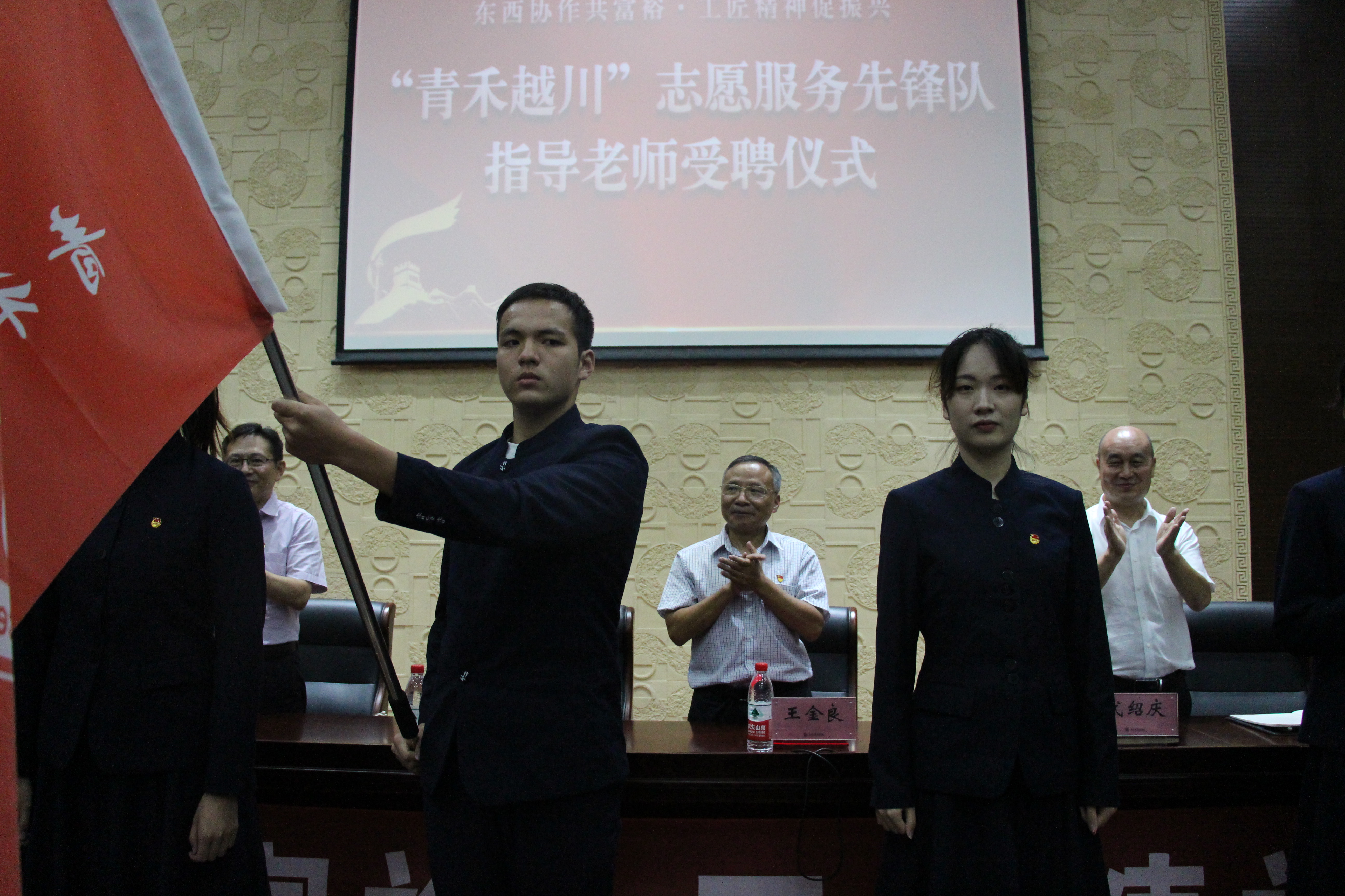 9月16日下午,嘉職院時尚設計學院東西協作工作推進會暨時尚設計學院“青禾越川”志愿服務先鋒隊交接出征儀式在神農廳舉行。黨委書記方俊良為“全國先進工作者”、全國“五一”勞動獎章獲得者、海鹽縣首席農業專家、高級農藝師王金良頒發“東西協作特聘顧問”和“青禾越川”志愿服務先鋒隊指導老師聘書,為志愿服務先鋒隊授旗出征,同時,兩支社會實踐團隊由此交接,接力傳承服務精神。