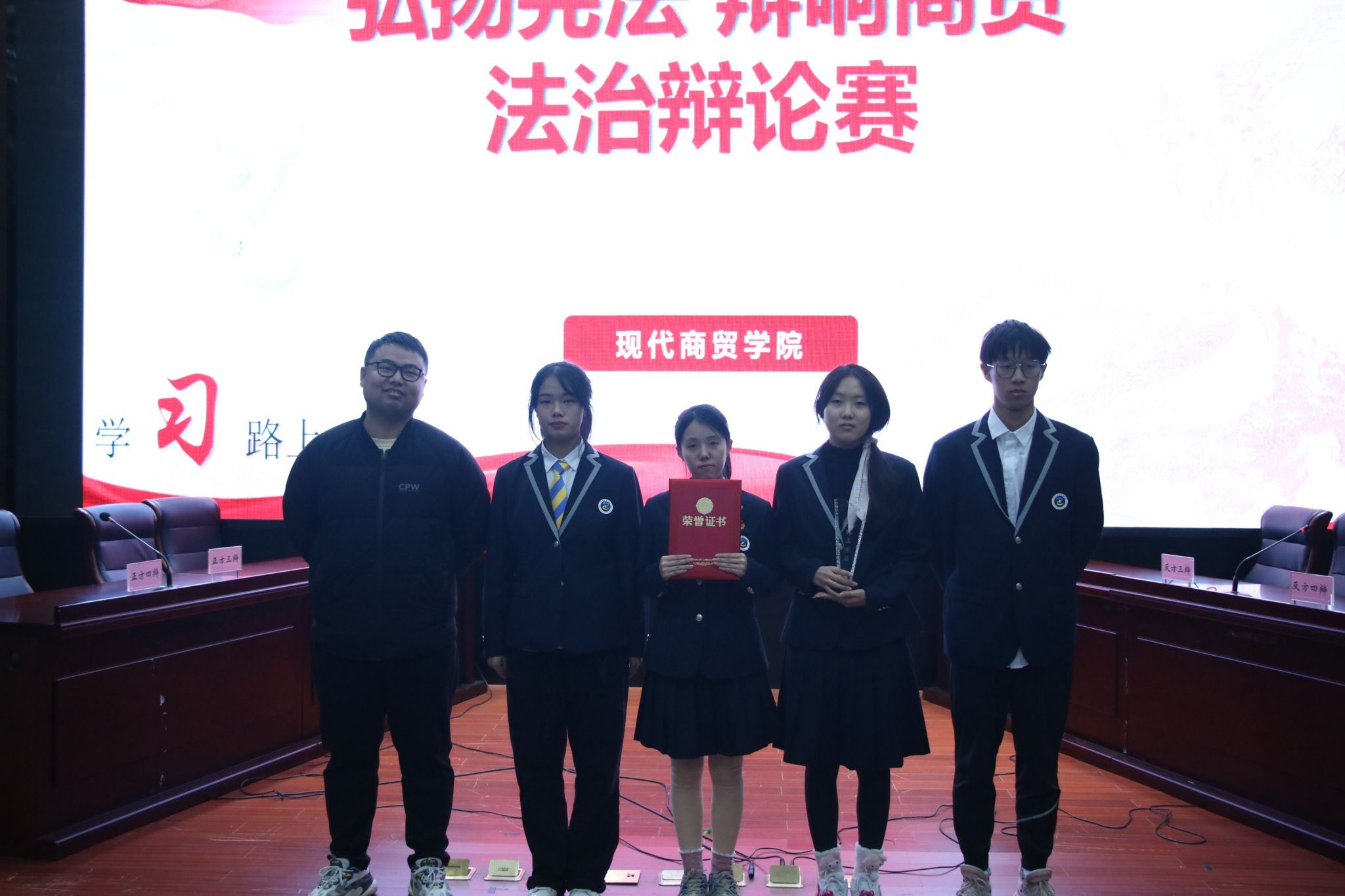 11月30日,學院舉行“弘揚憲法,辯響商貿”法治辯論賽。比賽分為陳述觀點、自由辯論、總結陳詞三個環節。正反方選手就“情在理先還是理在情先”“法律審判之外的道德審判是正當的嗎?”等辯題展開激烈討論。最終,財務隊獲一等獎,物流隊獲二等獎,跨境電商隊獲三等獎,財務222班黃之寧獲優秀辯手稱號。