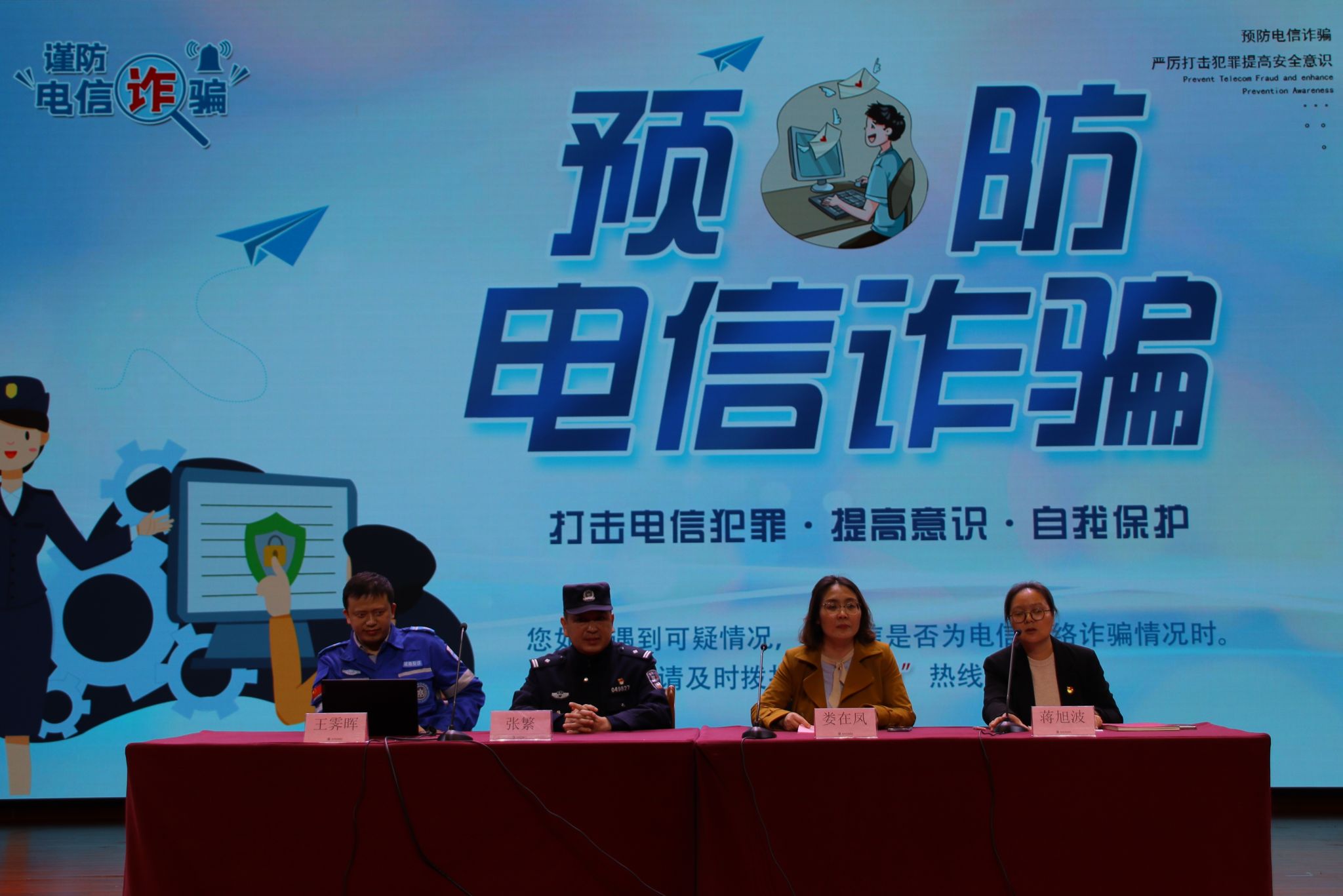 張繁以生動的案例向同學們展示了詐騙手段和方式,詳細講解了電信詐騙的幾種常見形式和防范的具體措施。他強調,同學們要保持警惕,不聽、不信、不轉賬,捂緊錢袋子。王霽暉詳細介紹了有關刷單詐騙、網絡購物詐騙、公檢法詐騙的實際案例,深入淺出地向同學們講解了防范電信詐騙的實用知識,讓大家深入了解防范方法,增強自我防范意識。