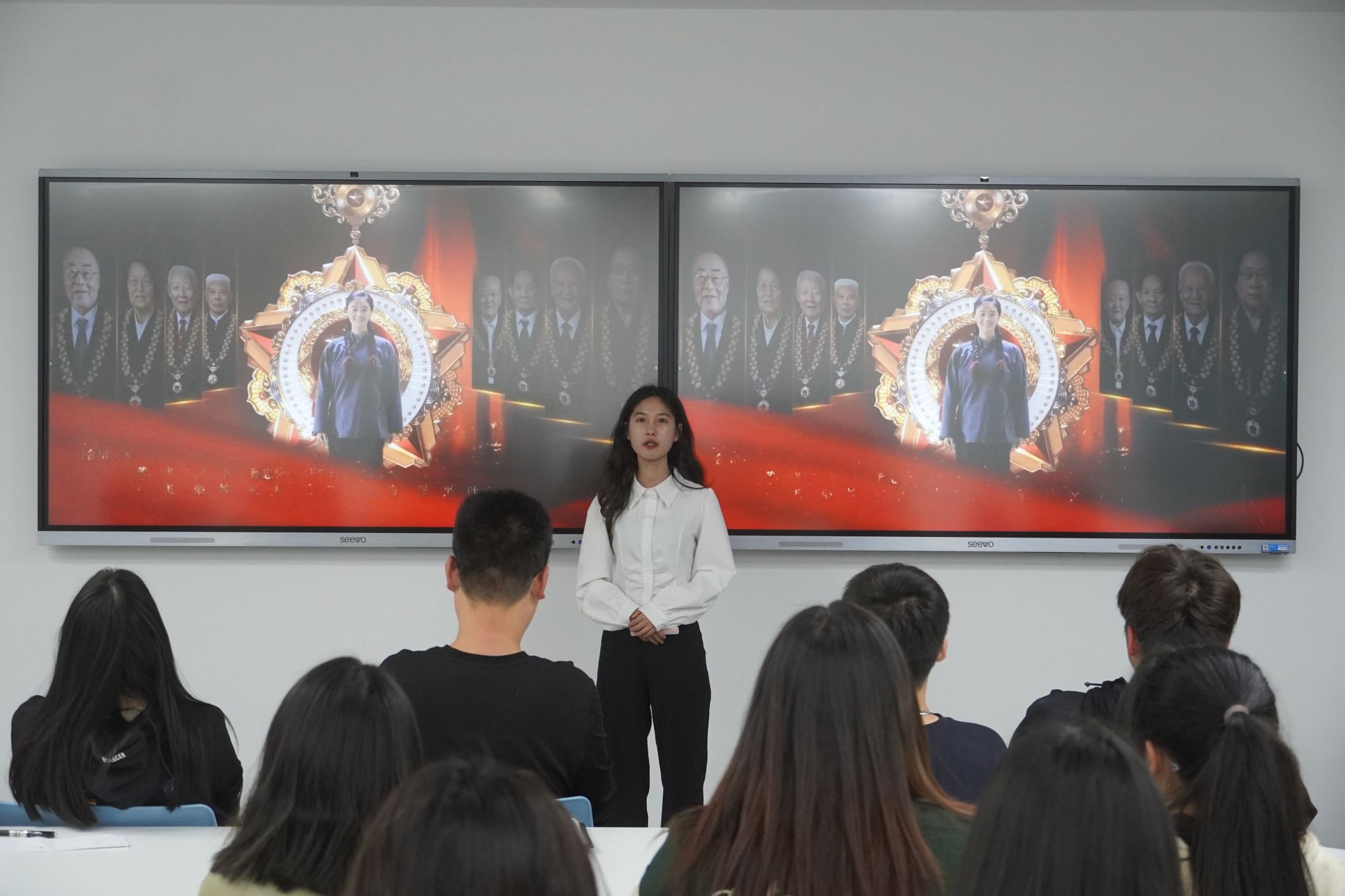 青年研習營負責人、時尚設計學院團總支副書記張甄珍以《<功勛>記憶——時代英雄價值的三重奏》為題,回顧了首批8位“共和國勛章”獲得者的人生華彩篇章,號召青年學子學習英雄人物忠誠、執著、樸實的人生品格和為祖國人民獻身的崇高境界。