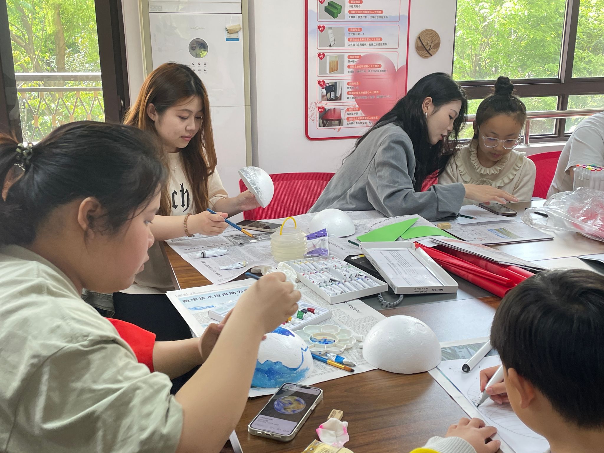 4月17日,志愿服務隊赴玫瑰恬園社區開展“眾生的地球”主題彩繪活動,志愿者與社區兒童共繪“我眼中的地球”,為每一幅畫作賦予保護自然的深刻內涵。非遺文化組志愿者教小朋友們給蛋殼上色,用精細的工筆刻畫立體地球,鼓勵孩子們提高生態環保意識,養成勤儉節約、綠色低碳的生活方式。