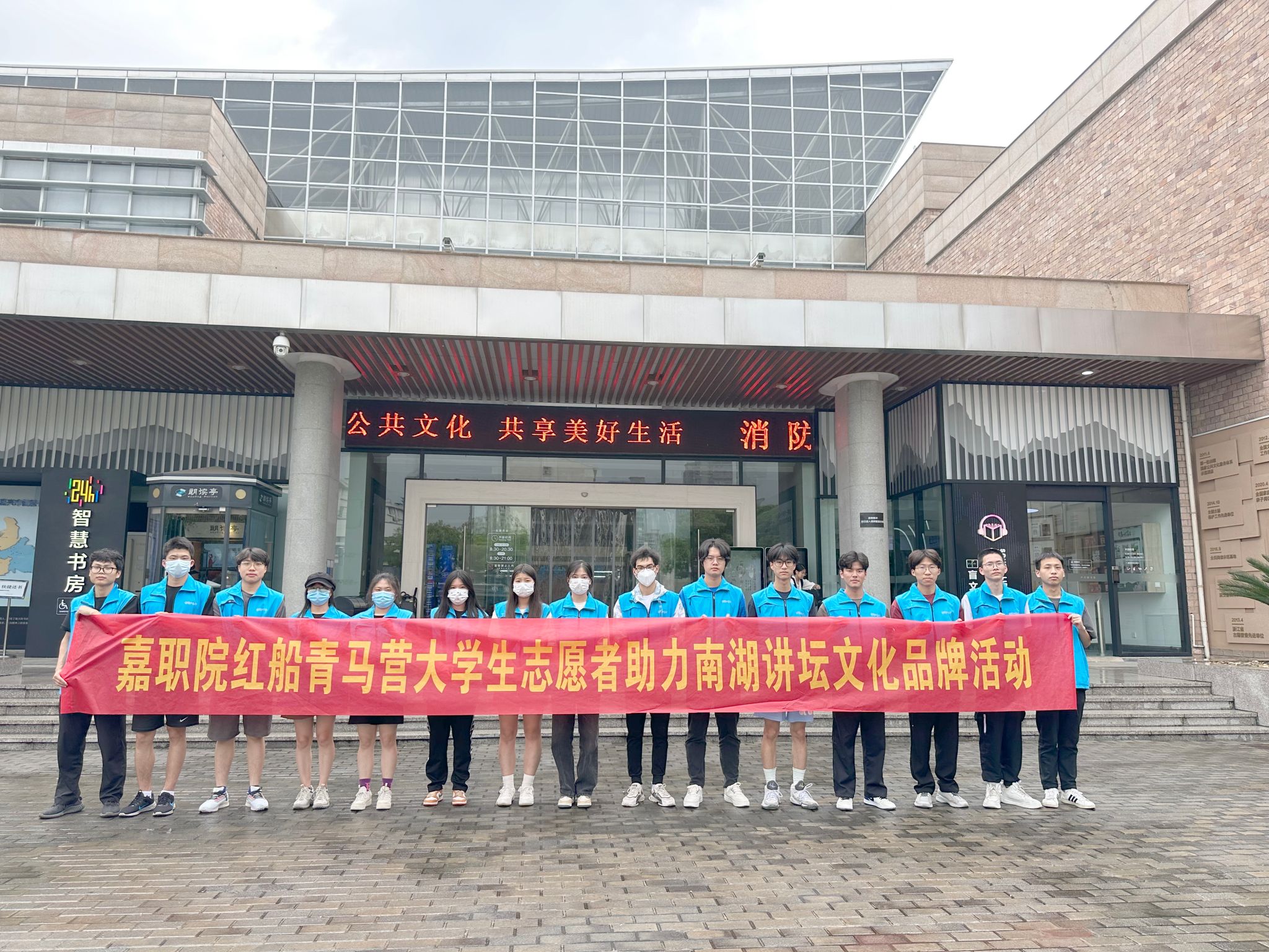 5月27日下午,南湖講壇·元宇宙閱讀暨《飛出太陽系》公共文化講座在嘉興市圖書館開講,嘉職院馬克思主義學院黨員教師指導16名紅船青馬營大學生志愿者,開展助力南湖講壇公共文化品牌活動,獲得當地市民和市圖書館工作人員一致肯定。