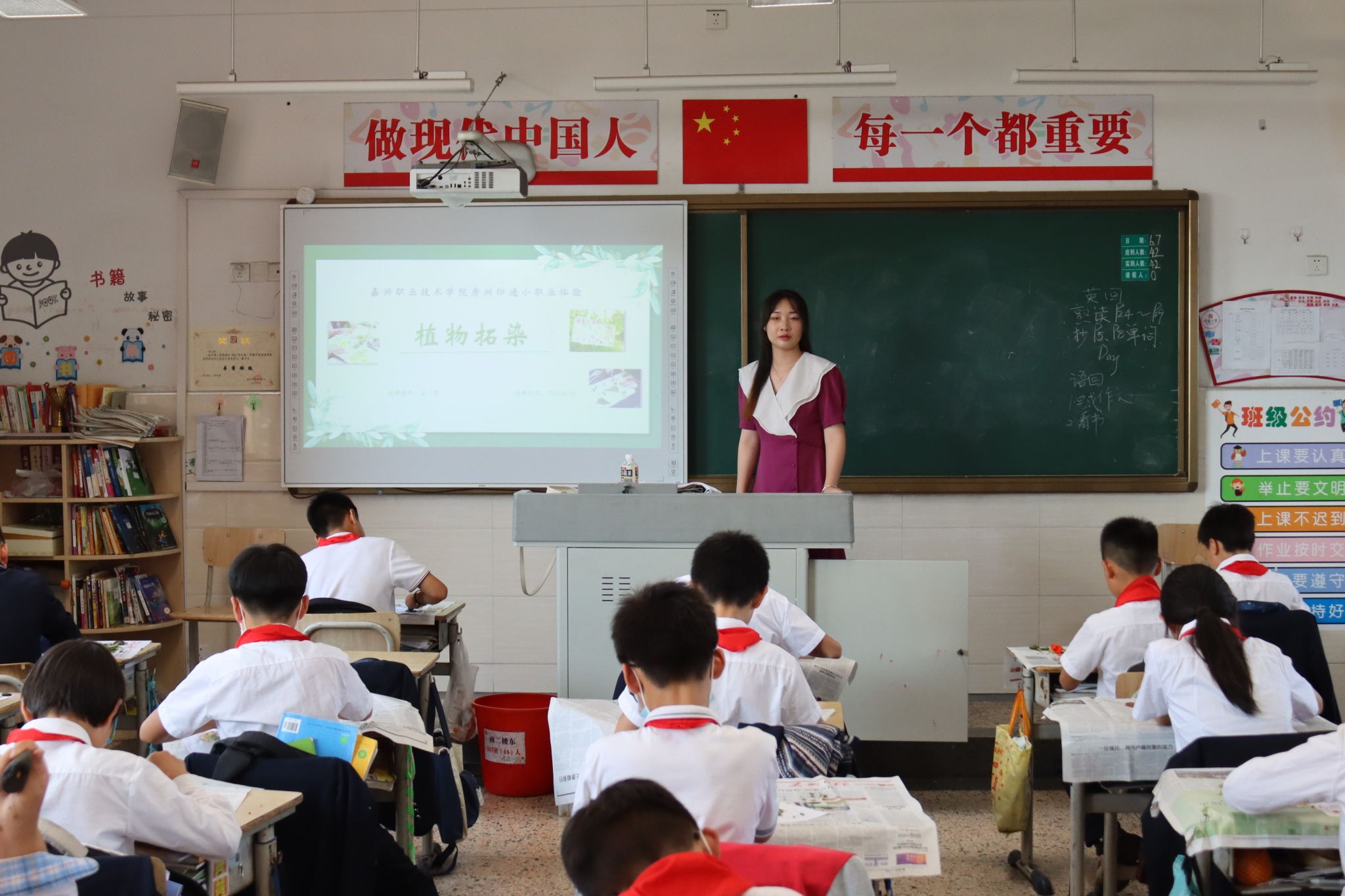 本次職業體驗課程以植物拓染、古法扎染、主題繪畫形式開展,旨在引導小朋友們從小培養科學、合理的職業觀念,提升自我認知、增強人生規劃。小朋友們通過體驗捆扎法、折疊扎法、平針縫絞法等不同扎結技法,切身感受傳統工藝、傳統文化的魅力;通過洪河蜜梨和槜李主題繪畫,增強了投身鄉村振興的遠大抱負;通過紅色文化印染體驗,增強了對英雄精神的深刻理解。
