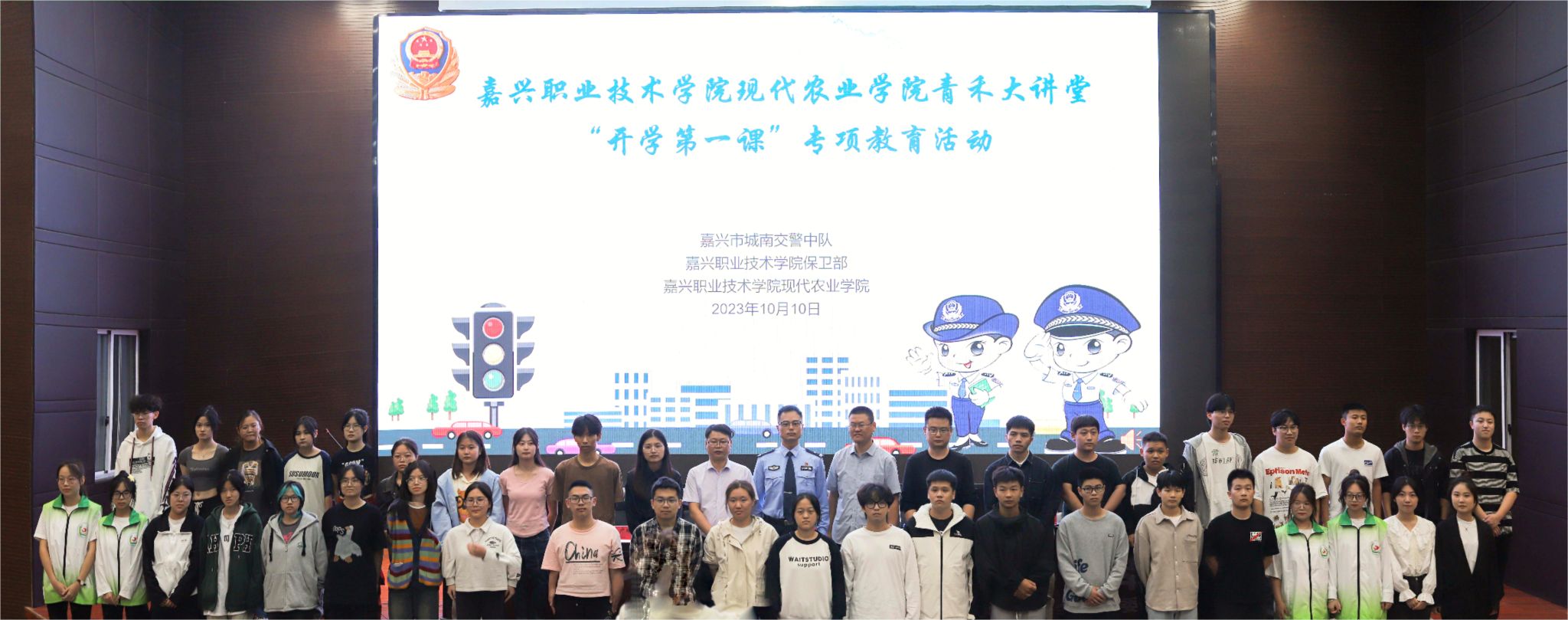 為進一步增強學生交通法治觀念、安全意識,有效預防和減少交通安全事故的發生,提高學生自我保護能力,10月10日,嘉職院現代農業學院開展青禾交通安全大講堂之“開學第一課”專項教育活動,聘請城南交警中隊指導員時宇杰為學院交通安全教育外聘輔導員,為青農交通安全志愿服務隊授旗,為學生安全教育宣講員頒發聘書。