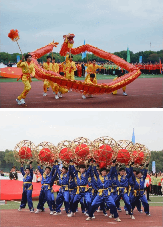 開幕式上,學校舞龍、海鹽滾燈表演隊和各二級學院團體操隊帶來精彩表演。