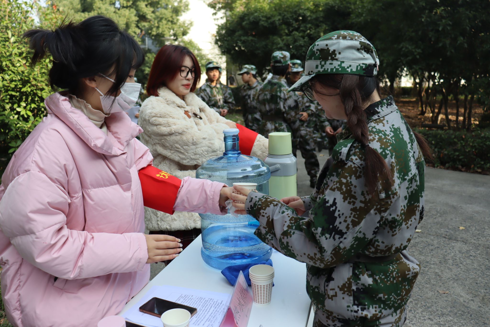 時(shí)尚先鋒入黨積極分子志愿服務(wù)隊(duì)設(shè)立暖心驛站,為教官和新生提供熱水,及時(shí)關(guān)注新生身體健康狀態(tài),送身體不適的新生前往醫(yī)務(wù)室。“有需要就找我們,我們隨時(shí)在。”這是他們對(duì)新生說(shuō)的最多的話,字字句句猶如冬日里的暖陽(yáng),溫暖著新生們的心。