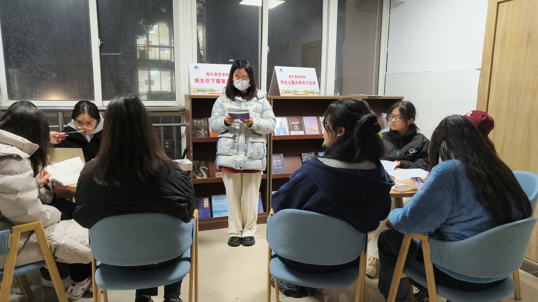 為不斷教育引導(dǎo)新時代青年敢于吃苦,勇于擔(dān)當(dāng),進一步堅定理想信念,承擔(dān)時代重任。近日,嘉職院現(xiàn)代商貿(mào)學(xué)院在學(xué)生公寓樓共享學(xué)習(xí)空間舉行讀書分享會活動。