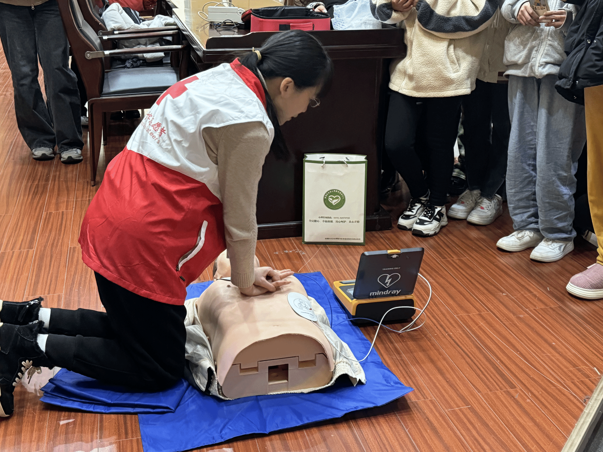 在培訓過程中,學生們積極參與,認真學習并進行現場演練。大家不僅了解了急救的重要性,還掌握了一些關鍵時刻能夠拯救生命的技能。園藝222班梅栩嘉說:“這是一個很有意義的活動,我們了解急救知識的同時,還學習了在書本中學不到的實操技能,真正做到在緊急情況下救助他人。”