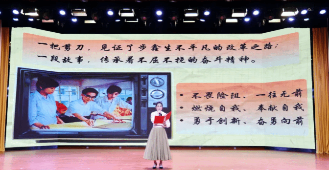 《繡紅旗》《歷史的鐘鳴:巴黎和會下的民族覺醒》《大陳島的時代問答——大陳島之光》《“改革先鋒”布鑫生和“一把剪刀”的故事》……比賽現場,來自全校各二級學院的7支學生參賽隊伍依次上臺表演,有的慷慨激昂、聲情并茂,有的婉轉低回、娓娓道來,為現場師生代表帶來了一場視聽盛宴。他們配以歌舞、朗誦、話劇等藝術形式,深入挖掘具有地域特色的紅色文化資源,圍繞革命人物、革命精神、紅色文物等內容,用生動的語言、鮮活的表演、真摯的情感,傾情講述一個個感染人、教育人、鼓舞人、塑造人的紅色故事,再現了那段激情燃燒的崢嶸歲月,充分展示了師生感黨恩、跟黨走的良好精神風貌。精彩的表演深深打動了評委和觀眾,現場不時響起熱烈掌聲。