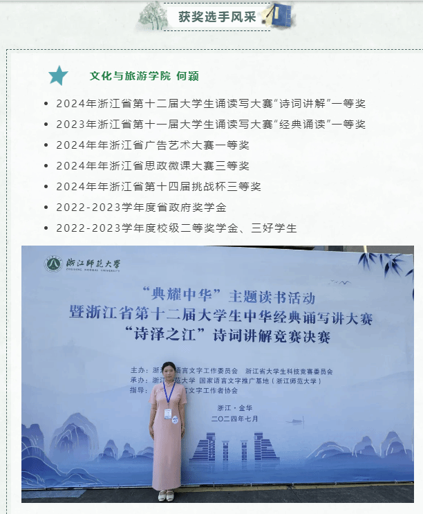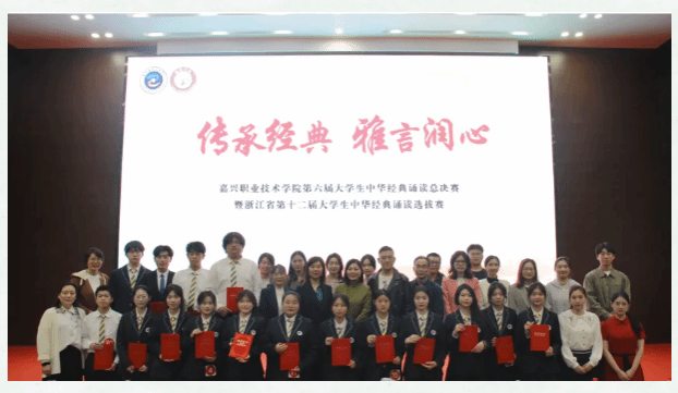 近日,浙江省第十二屆大學生中華經典誦寫講大賽圓滿落幕。由嘉職院文化與旅游學院中文教研室指導團隊指導的何穎、石嘉萍、李彥熙等10位嘉職學子,斬獲個人組一等獎2項,二等獎1項,三等獎7項。嘉職院榮獲大賽“優秀組織獎”。