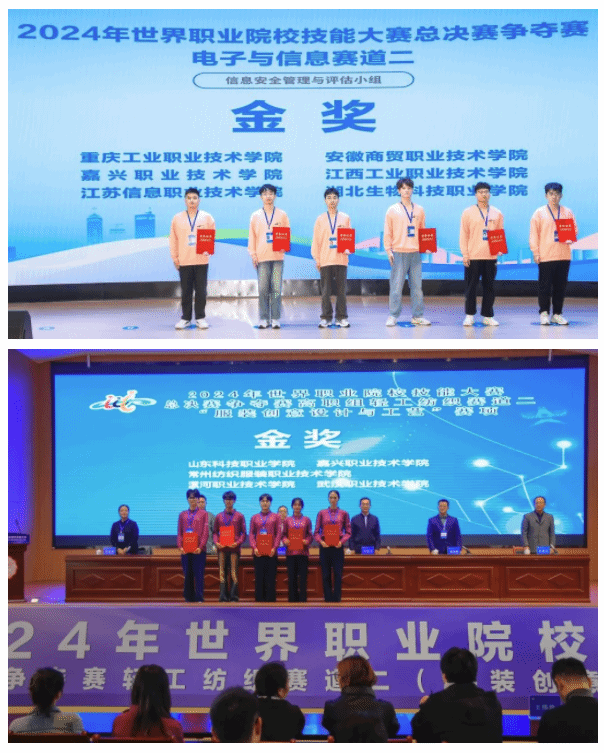 10月25日,2024年世界職業院校技能大賽總決賽爭奪賽圓滿落幕,由嘉職院互聯網學院、網絡空間安全學院院長陳雙喜、專任教師傅新杰指導的周敬杰、全陳昊、華凱、朱蕓慧團隊,時尚設計學院專任教師彭顥善、副院長羅曉菊指導的胡征宇、孫雨諾、李慶云、周文霞團隊分別斬獲信息安全管理與評估、服裝創意設計與工藝賽項金獎。