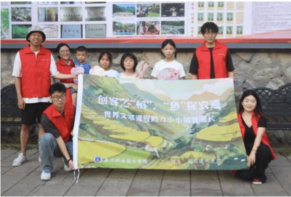 實(shí)踐團(tuán)隊(duì)深入麗水市青田縣龍現(xiàn)村,以稻魚(yú)共生為主線,通過(guò)實(shí)踐考察、親身探究、協(xié)同合作等方式了解稻魚(yú)種養(yǎng)的歷史沿革,掌握青田稻魚(yú)共耕的現(xiàn)實(shí)原理,厚植麗水深厚的農(nóng)遺文化。通過(guò)調(diào)查研究當(dāng)?shù)卮迕瘛⒔逃ぷ髡摺⑥r(nóng)業(yè)專(zhuān)家等了解稻魚(yú)共生實(shí)際操作及其經(jīng)濟(jì)效益。