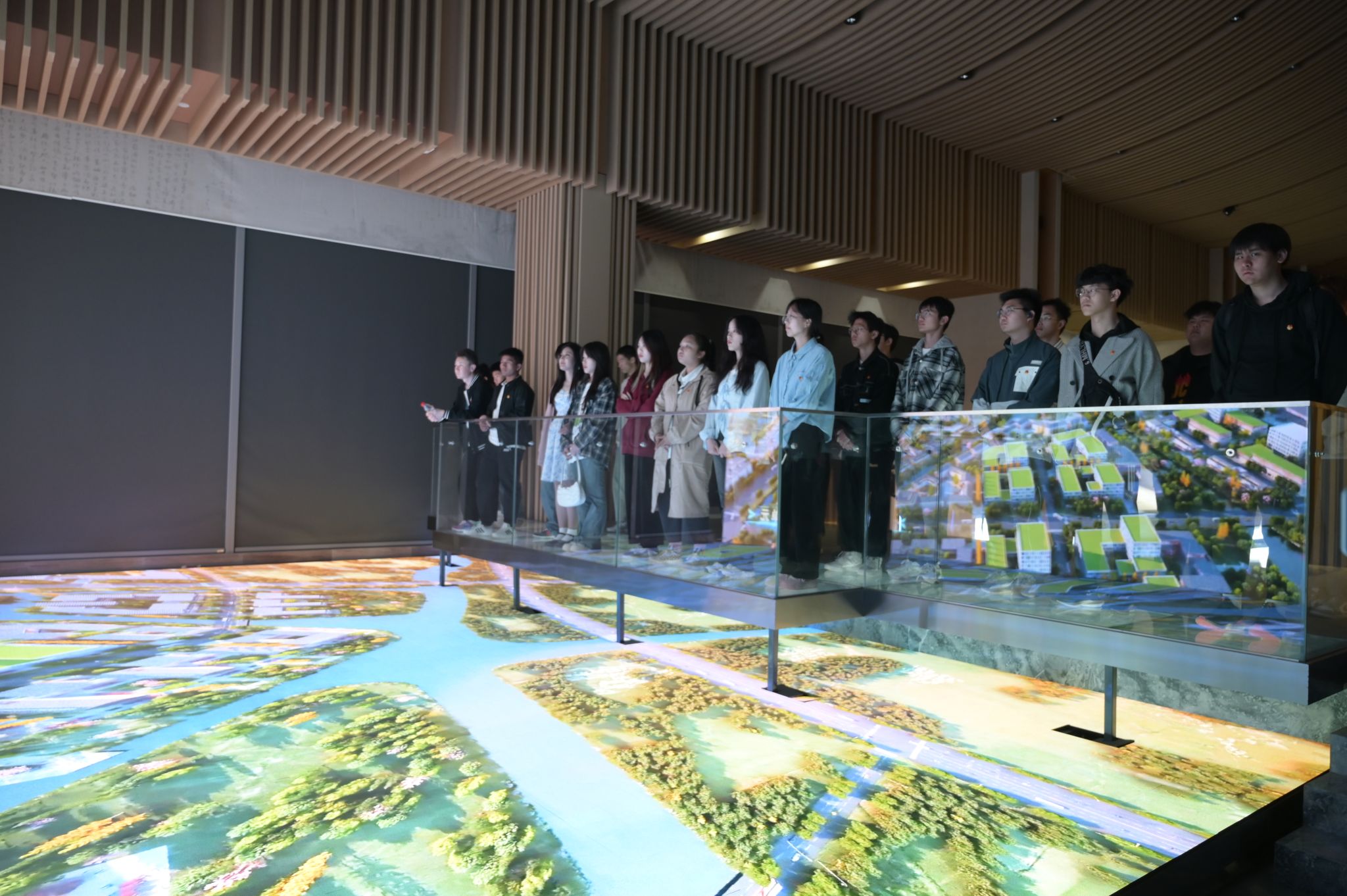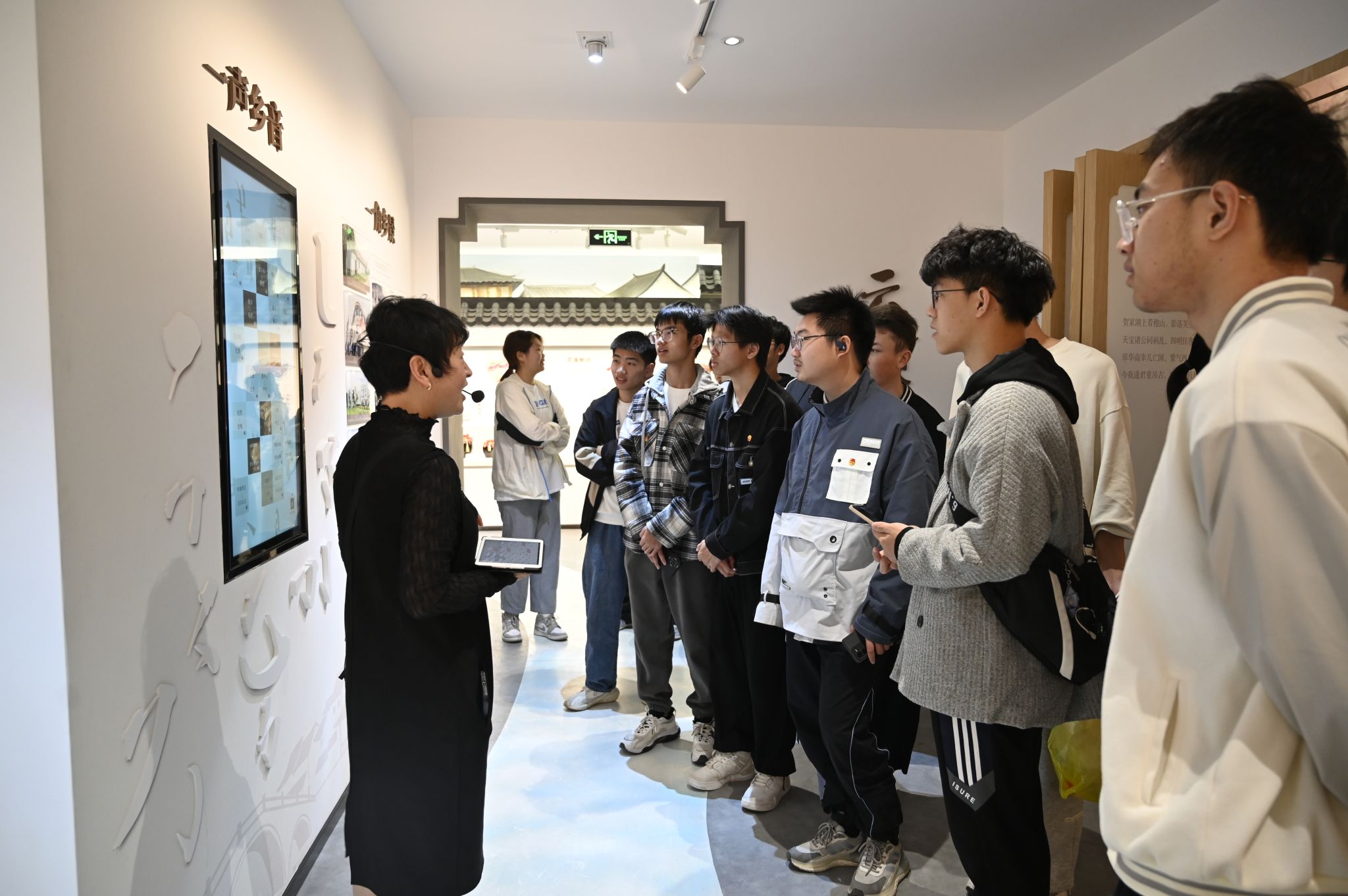 研學小組來到長三角一體化嘉善展示館,了解長三角生態綠色一體化發展的建設成果和發展規劃。未來,嘉善縣將打造三橫一縱、八園十蕩、河網密布、城水相依、林田共生的生態格局。在與浙江大學共建的未來區域發展實驗室中,大家觀賞了會呼吸的衣服,4D打印機,稀土纖維等黑科技產品。