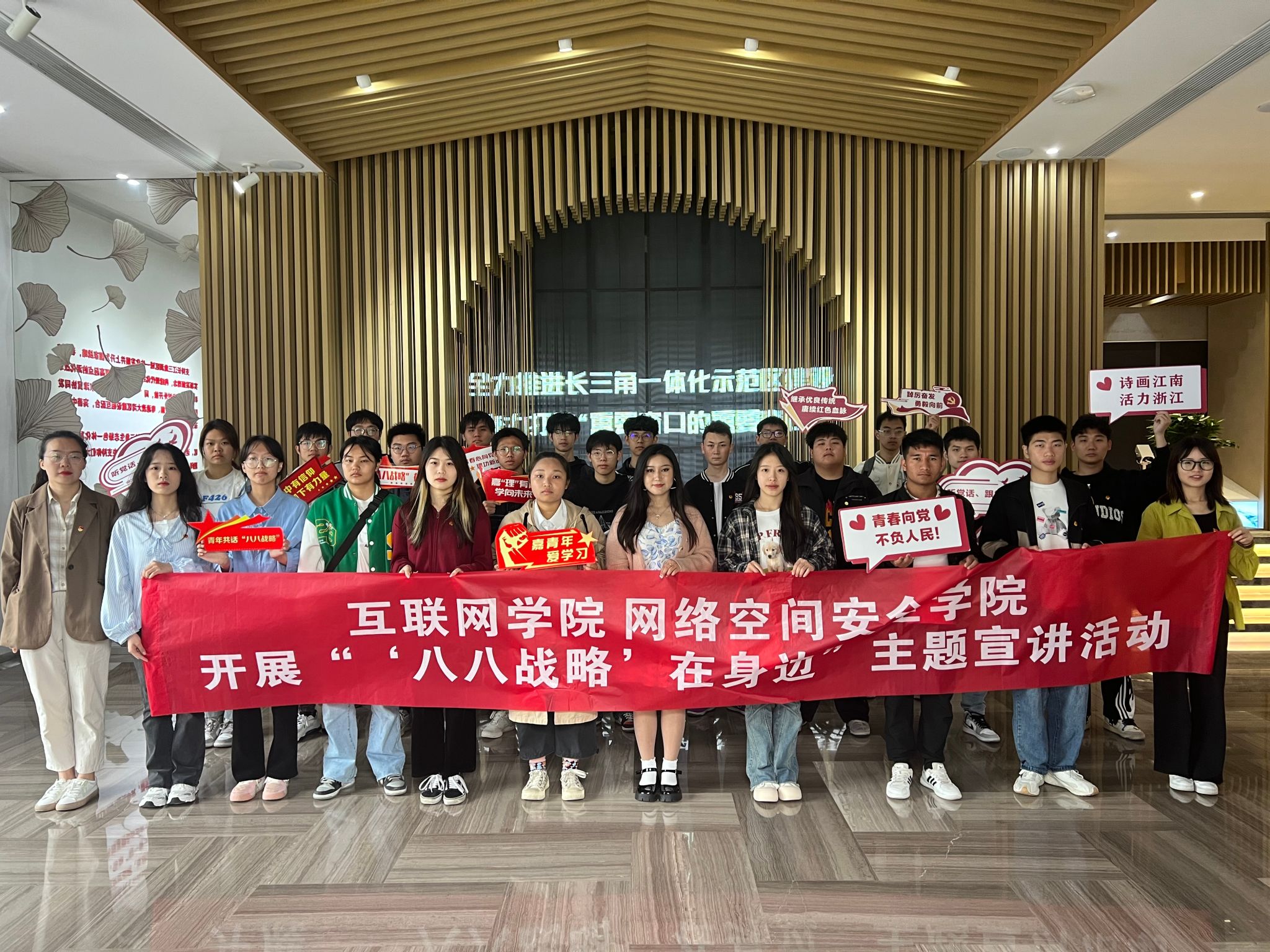 在“八八戰略”實施20周年之際,為全面貫徹落實黨的二十大精神,深刻領悟“八八戰略”的深刻內涵和實踐要求,4月15日,嘉職院互聯網學院、網絡空間安全學院組織研學小組師生前往嘉善縣開展“‘八八戰略’·嘉興印記”研學活動。