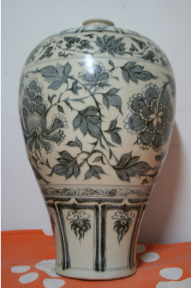 元青花纏枝牡丹紋梅瓶是一件元代青花瓷器,1959年出土于南京江寧縣將軍山沐晟墓,現藏于景德鎮中國陶瓷博物館。元青花纏枝牡丹紋梅瓶高44厘米,口徑5.4厘米,采用傳統拉坯法制胎成型,制坯時分段節裝,接痕明顯,器形古樸典雅,給人以莊重、雄偉和挺拔秀麗的美感,為元代梅瓶的典型樣式。使用進口的“蘇麻離”青料,發色蒼翠濃艷,對比強烈。元青花纏枝牡丹紋梅瓶是元代梅瓶的典型樣式,整個器型端莊穩重,為元青花瓷器的代表作品,被鑒定為國家一級文物。