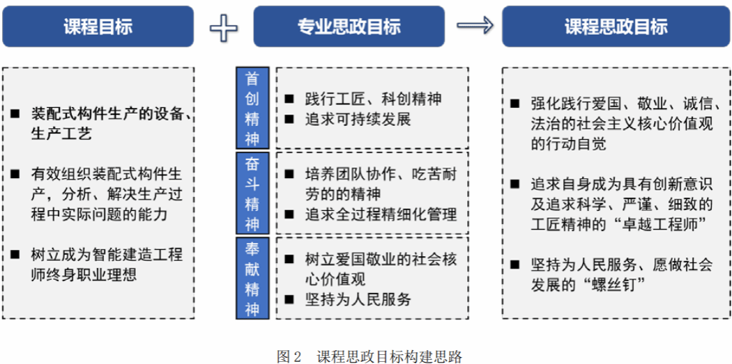授課是培育學(xué)生最基本的形式,也是貫徹落實(shí)“紅船精神”的基本途徑。課程內(nèi)容不能再是過往的知識(shí)密集型,而當(dāng)挖掘課程內(nèi)容與課程思政的關(guān)聯(lián)度,注重課程全內(nèi)容、全過程、全覆蓋的教學(xué)形式,“課程目標(biāo)+專業(yè)思政目標(biāo)→課程思政目標(biāo)”貫穿,構(gòu)件“紅船精神”豐富內(nèi)涵與智能裝配式施工融合的課程體系,案例如下。