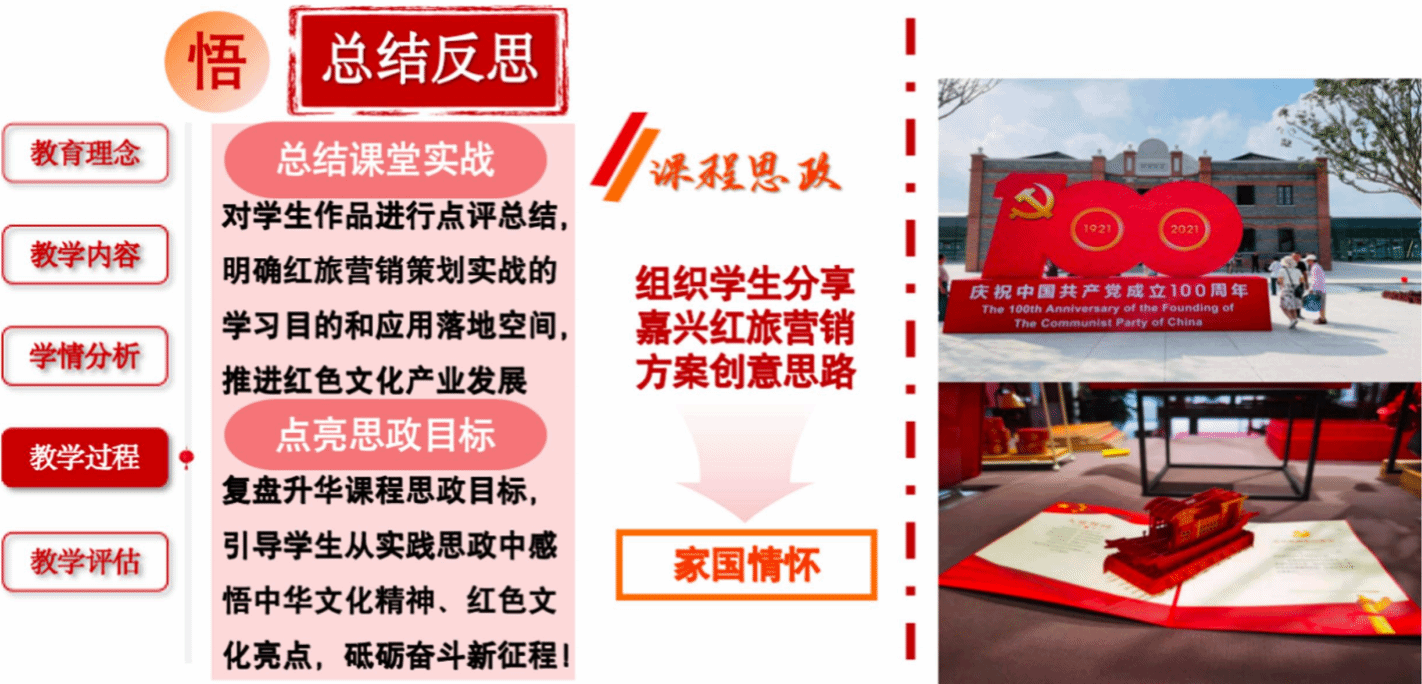 對作品點評總結,明確紅旅營銷策劃實戰的終極目標和應用空間;升華思政目標,引導學生從實踐思政中感悟紅色文化亮點,砥礪奮斗新征程,涵養廣闊的家國情懷。