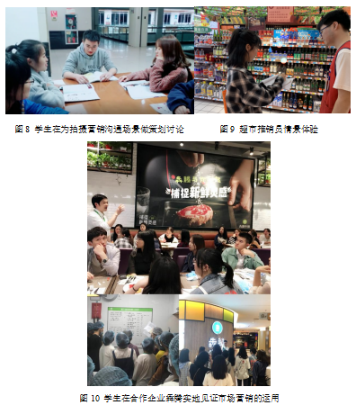 課外實踐體驗:在本課程中學生也會有較多課外實踐機會加強學習效果,激發團隊協作與創新潛能。例如學生會利用教室外的各種地方進行實訓設計和實景拍攝(圖7-9),或者通過專業安排,與企業對接需求,聽企業導師“上一堂課”(圖10),在企業身臨其境感受市場營銷在企業運營的各個環節中的重要作用。