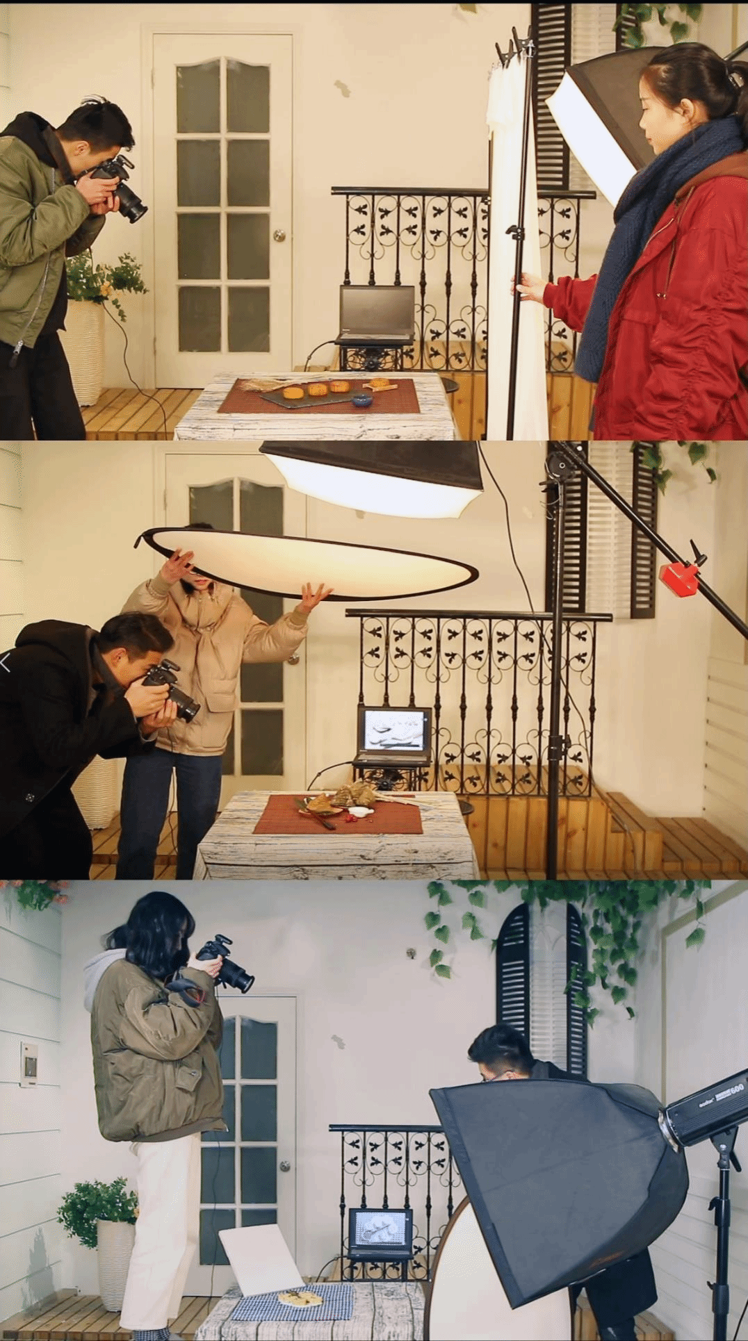 教師進行實時指導,鼓勵多次嘗試,各組相互比較,相互學習,直到構圖滿意為止,經過各種嘗,期望達到相得益彰的效果,更符合品牌文化理念和網店消費者喜好。布光是課堂實施的重點,也是難點,為了解決這個問題,我們用了 LR軟件進行聯機拍攝,實時的將布光后拍攝的效果顯示在電腦上,以便學生及時調整光位、光質和光的強度。(如圖 4 所示)根據食品的特點,可以選擇自然光,但為了更好的控制光源,我們更多的選擇用人造光源來模擬自然光。
