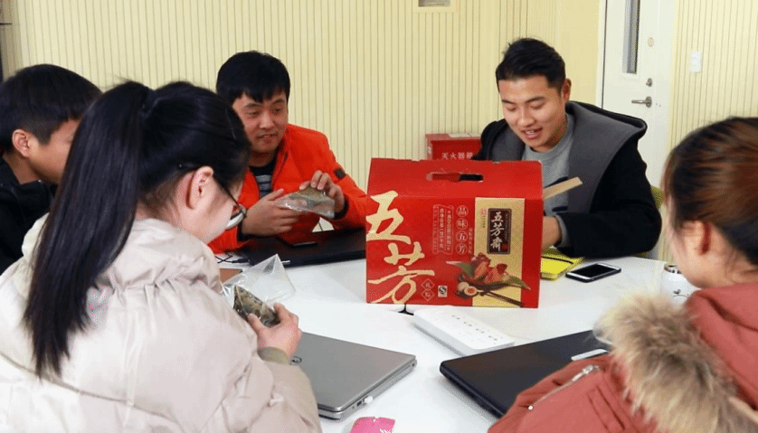 五芳齋是浙江嘉興的老字號品牌,是全國首批“中華老字號”。企業 slogon是守護和創新中華美食,五芳齋將中國傳統文化與現代元素相結合,打造出具有現代感和傳統文化氣息的餐飲空間和產品,目前已形成以粽子為主導,集月餅、湯圓、糕點、蛋制品、其他米制品等食品為一體的產品群。讓消費者在品嘗美食的同時,也能感受到中國傳統文化的魅力和情感。然而,在現代市場中,由于競爭激烈,如何讓消費者在眾多粽子品牌中一眼認出五芳齋粽子,并產生購買意愿,是一個亟待解決的問題。本案例通過將嘉興特色五芳齋粽子的傳統特色與電子商務專業商品拍攝和視覺營銷設計相結合,可以突出其獨特性和亮點,提高品牌知名度。任務目標一是了解五芳齋的品牌文化和購買人群:視覺營銷的基本要素是了解品牌及其產品,所以本任務的關鍵點是快速準確的認識品牌文化、產品和購買人群,老師帶領學生參觀五芳齋工廠并品嘗了五芳齋的美食,(如圖 1 所示),同學們加深理解了品牌的發展歷程、品牌故事、制作工藝和食材配料及口感,他們共同研究實物,關注產品細節,感受其味道、色彩、造型等方面的的美妙和魅力。讓學生更好地理解和欣賞傳統美食的文化內涵。學生通過以上活動,全方位,多角度的認識了商品,為下一步具體創作打下良好的基礎。