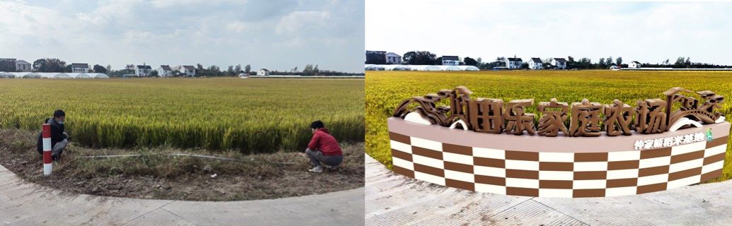 在項目設計的實踐階段,學生可能通過參觀學習或參與部分實地測量環節的方式,參與到具體的項目實踐過程中。由于學生在學校環境中接觸和學習的理論知識具有固定性的特征。因此,在諸如農村景觀裝置設計的過程中,其思路可能會出現固定性較強的局限性。因此,更需要教師結合學生的學習理解能力,更加充分的對學生進行教育和引導。例如,在學生進行田樂家庭農場景觀裝置設計項目的參觀學習階段,工作室就應當盡可能帶學生進入到大米生產的一線環境進行觀察和感受,讓學生對大米產品本身的品質、農村地區的環境特征等進行真實而全面的了解,以便激發學生在景觀裝置設計環節的主觀思維創新性。鼓勵學生從農產品生產的綠色環保以及農村稻米的品牌故事入手,在景觀裝置設計中,將logo的設計以及整體的核心圖樣設計與當地的人文風光、自然風光以及品牌故事實現融合。以具體的細節切入點,引導學生形成具有創新性的景觀裝置設計思路,并且鼓勵學生通過小組合作的方式對包裝設計的方案進行討論和總結,最終初步形成景觀裝置設計方案。這種基于自主思考和實踐感受所形成的景觀裝置設計初步方案,必然能夠保證真實性和貼合性。教師在實踐過程中,只需要結合項目推進的流程以及項目設計的要求,面向學生進行更加充分的講解和介紹。并且對學生應用先進輔助工具進行景觀裝置設計的具體實踐進行針對性的指導,就能夠獲得核心項目參與環節,學生良好的實踐學習效果。