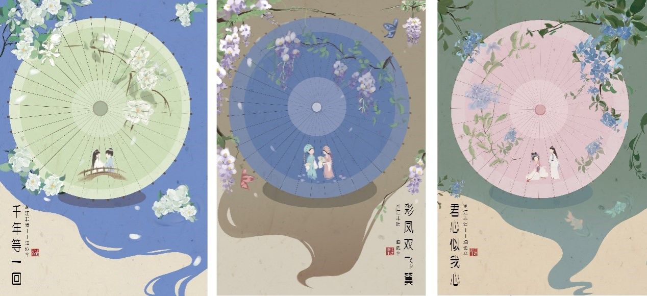 在課堂教學(xué)中,隨著課程內(nèi)容的逐步深入,使思想政治內(nèi)容逐漸得到體現(xiàn)和深化,從而拓展學(xué)生愛國主義,人文情懷,科學(xué)素養(yǎng),創(chuàng)新意識(shí)和工匠精神的教育途徑。不斷深挖《海報(bào)設(shè)計(jì)》教學(xué)內(nèi)容中思政知識(shí)理論體系,找準(zhǔn)思政與課程的契合點(diǎn),運(yùn)用思政知識(shí)進(jìn)行教學(xué)實(shí)踐。此外,還應(yīng)積極將傳統(tǒng)的課堂教學(xué)與現(xiàn)代思政活動(dòng)相結(jié)合,結(jié)合愛國主義、職業(yè)道德以及社會(huì)公德等方面的教育,在課程的實(shí)踐指導(dǎo)中提升學(xué)生的思想政治意識(shí)和綜合素養(yǎng)。如學(xué)生以《夢(mèng)想》設(shè)計(jì)主題的公益海報(bào)設(shè)計(jì)作品,見圖3-圖4,以《嘉興頌》為設(shè)計(jì)主題的文化海報(bào)作品,見圖5-圖6,以《傘韻詩情》為設(shè)計(jì)主題的文化海報(bào)作品,見圖7-圖9,此系列海報(bào)獲得浙江省大學(xué)生藝術(shù)節(jié)設(shè)計(jì)作品類一等獎(jiǎng)。