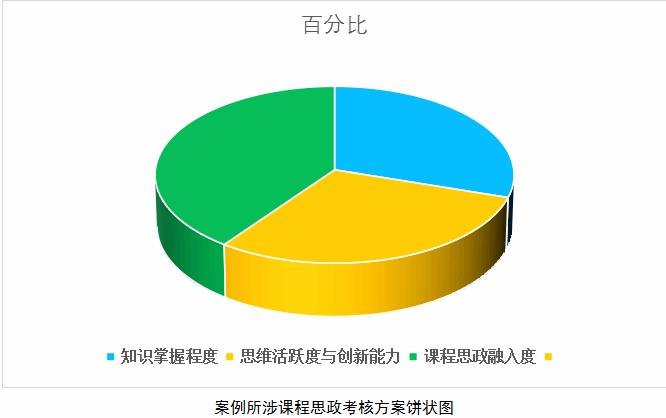 教、學(xué)、考是教育過(guò)程中核心的一環(huán),而課程思政考核目前處于相對(duì)薄弱甚至是真空狀態(tài)。以下考核方案餅狀圖,結(jié)合建構(gòu)主義學(xué)習(xí)理論、情境學(xué)習(xí)理論等,將價(jià)值引導(dǎo)與知識(shí)傳授有機(jī)結(jié)合。本方案以英語(yǔ)為載體,通過(guò)考試、問(wèn)卷形式等評(píng)估知識(shí)掌握度(30%);通過(guò)環(huán)保實(shí)踐創(chuàng)意項(xiàng)目評(píng)估創(chuàng)新能力(30%);通過(guò)思政論文評(píng)估思政融合程度(40%)。方案促成教、學(xué)、考一體化,形成了從課程設(shè)計(jì)、教學(xué)實(shí)施到效果評(píng)價(jià)的全過(guò)程管理。