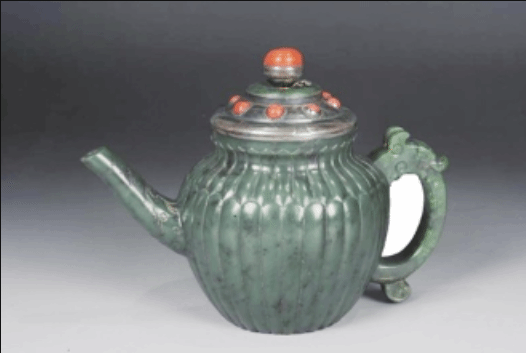 •       簡介:長沙博物館藏的一件精美的清代銀鑲瑪瑙碧玉執壺,是用整塊碧玉雕琢而成,通...