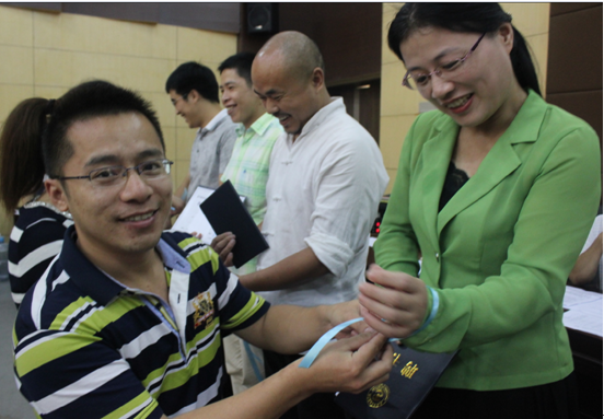 師徒結對儀式由人事處主持工作的王敏堅副處長主持。學院院長趙云、副院長章康龍、各分院領導和校內導師、校外導師及新教師共同出席結對儀式。副院長章康龍宣布師徒結對名單,師傅們鄭重接受學校趙云院長頒發的聘書,青年教師們走向師傅們的身邊,為導師們系上藍絲帶。整個儀式隆重而簡樸,莊嚴又活潑。