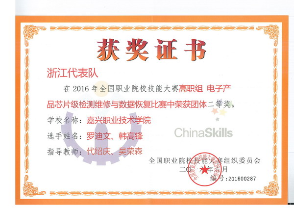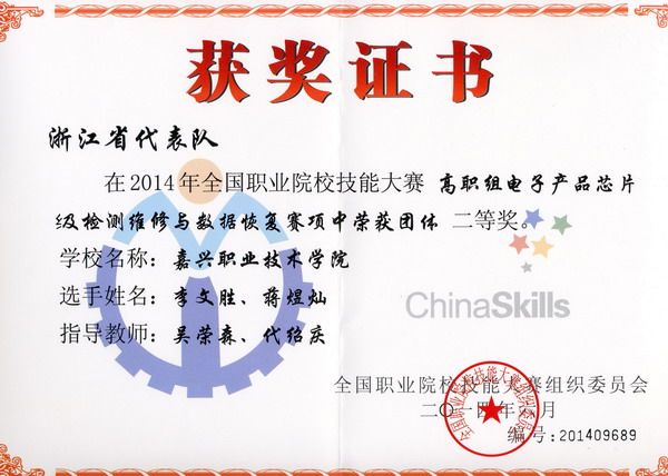 全國職業(yè)院校技能大賽不僅催生了一批技術(shù)“小能手”,指導(dǎo)老師也成了學(xué)院的教學(xué)“明星”,吳榮森老師便是其中的一位。今年的國賽中,他指導(dǎo)羅迪文、韓高鋒2名同學(xué)參加“電子產(chǎn)品芯片級檢測維修與數(shù)據(jù)恢復(fù)”賽項(xiàng)競賽,并在經(jīng)過激烈角逐后脫穎而出,獲得國賽二等獎的好成績。