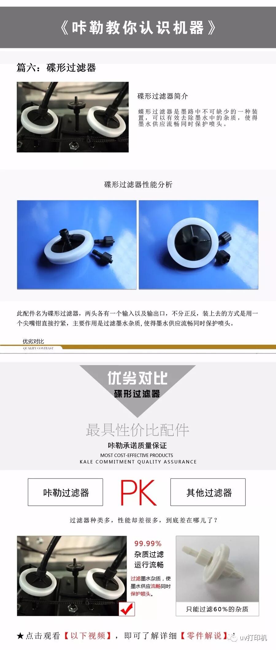 特點:超細過濾,適合uv打印機,萬能打印機,運用各樣墨水,溶濟性,水性及UV墨水等設備,過濾雜質,用以守護噴頭,延長噴頭壽命。為了更好地守護uv平板打印機噴頭,意見運用六個月更換一次,以達最佳效果。