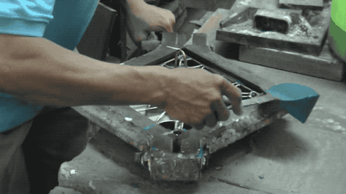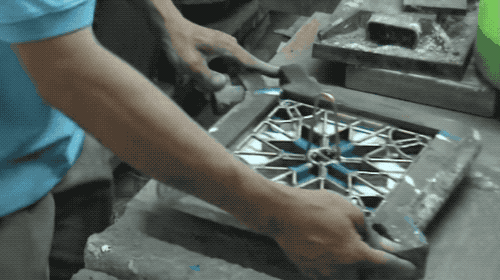 花案模具過去是用銅條和銅片焊接而成的,此刻改良了許多,是一全部直接澆筑的金屬模具架子,更加的嚴絲合縫。中間致密層