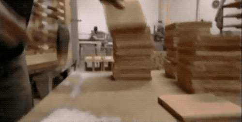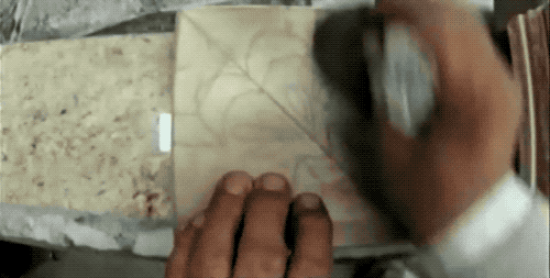 填上底部承壓層的基料,抹一抹,有種跟著手法 rap 起來的沖動。后續還要經過晾曬、干燥、浸水,再經過打磨、清洗、晾干,最后還有打蠟環節,這才算是完成一起濕法制花磚。