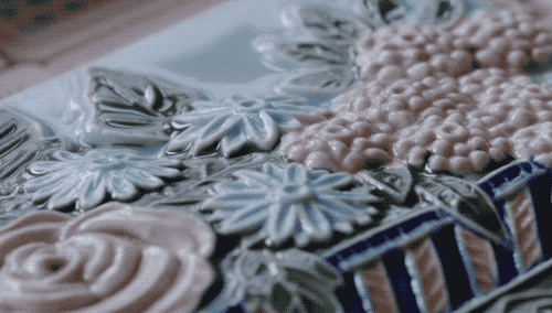 這便是出爐后的花磚啦~是不是和自家廚房、衛生間里的墻面非常類似...浮雕彩繪