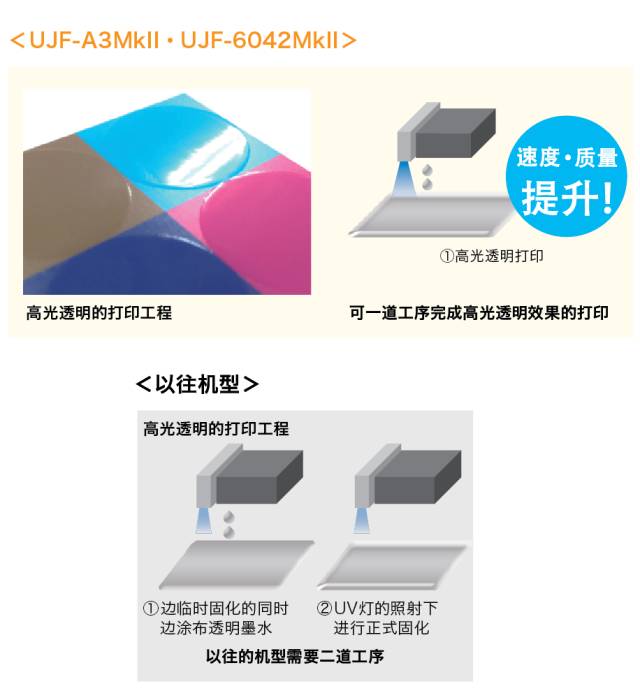 透明墨水的高精度掌控,全新搭載高品質(zhì)透明墨水打印技術(shù)MCC,高光透明打印一步到位!