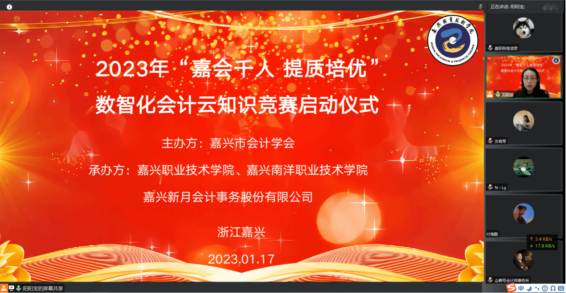 為順應國家數字化發展戰略,滿足企業數字化轉型需求,《會計改革與發展“十四五”規劃綱要》、《會計行業人才發展規劃(2021-2025年)》、《會計信息化發展規劃(2021-2025年)》等文件強調要加快會計數字化轉型,培養“懂會計、會業務、擅技術”數字化會計人才。由嘉興市會計學會主辦,嘉興職業技術學院、嘉興南洋職業技術學院、嘉興新月會計事務股份有限公司承辦的2023年“嘉會千人提質培優”數智化會計云知識競賽活動啟動儀式1月17日下午順利召開。