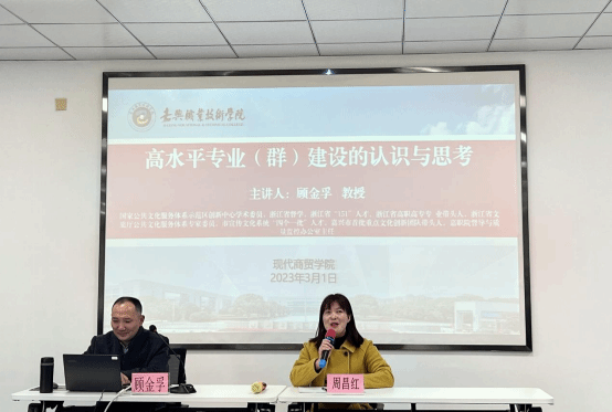 顧金孚主任從高水平專(zhuān)業(yè)(群)建設(shè)政策演進(jìn)、高水平專(zhuān)業(yè)(群)的特征、學(xué)校專(zhuān)業(yè)(群)建設(shè)現(xiàn)狀和高水平專(zhuān)業(yè)(群)建設(shè)思考四個(gè)方面做了深刻的講解。講座既有政策的解讀,又有對(duì)專(zhuān)業(yè)(群)的剖析,對(duì)現(xiàn)代商貿(mào)學(xué)院的五大專(zhuān)業(yè)進(jìn)行了問(wèn)診把脈,真正結(jié)合學(xué)院的專(zhuān)業(yè)建設(shè)進(jìn)行了逐一分析,提出要進(jìn)行數(shù)字信息和資源建設(shè),運(yùn)用數(shù)字化手段發(fā)現(xiàn)、分析和解決教育教學(xué)、專(zhuān)業(yè)建設(shè)方面的問(wèn)題,優(yōu)化、創(chuàng)新和變革教育教學(xué)活動(dòng),把問(wèn)題點(diǎn)深點(diǎn)透,最后還對(duì)癥下藥提出了努力的方向和解決的對(duì)策。