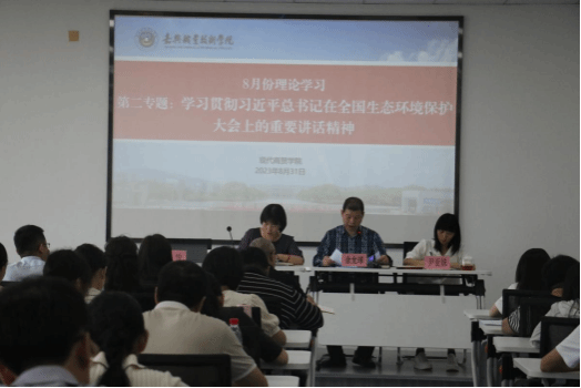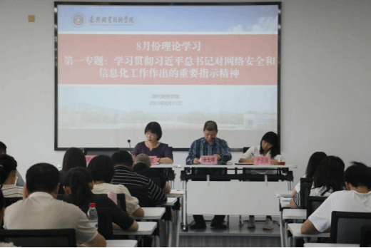 簡(jiǎn)單的新進(jìn)教師歡迎儀式后,現(xiàn)代商貿(mào)學(xué)院黨總支書記余允球首先帶領(lǐng)全體教職工進(jìn)行了8月份理論學(xué)習(xí):(一)學(xué)習(xí)貫徹習(xí)近平總書記對(duì)網(wǎng)絡(luò)安全和信息化工作作出的重要指示精神;(二)學(xué)習(xí)貫徹習(xí)近平總書記在全國(guó)生態(tài)環(huán)境保護(hù)大會(huì)上的重要講話精神。余書記指出,高校教師須切實(shí)增強(qiáng)學(xué)習(xí)宣傳貫徹網(wǎng)絡(luò)安全和信息化工作的思想自覺(jué)、政治自覺(jué)和行動(dòng)自覺(jué),“牢記一個(gè)使命、明確十個(gè)堅(jiān)持”,科學(xué)認(rèn)識(shí)網(wǎng)絡(luò)傳播規(guī)律,推進(jìn)網(wǎng)上宣傳理念、內(nèi)容、形式、方法、手段等創(chuàng)新,切實(shí)維護(hù)網(wǎng)絡(luò)意識(shí)形態(tài)安全和政治安全。同時(shí),鼓勵(lì)全體教職工積極做綠水青山就是金山銀山理念的積極傳播者和模范踐行者,共同建設(shè)美麗嘉興,共同開(kāi)創(chuàng)美好未來(lái)。