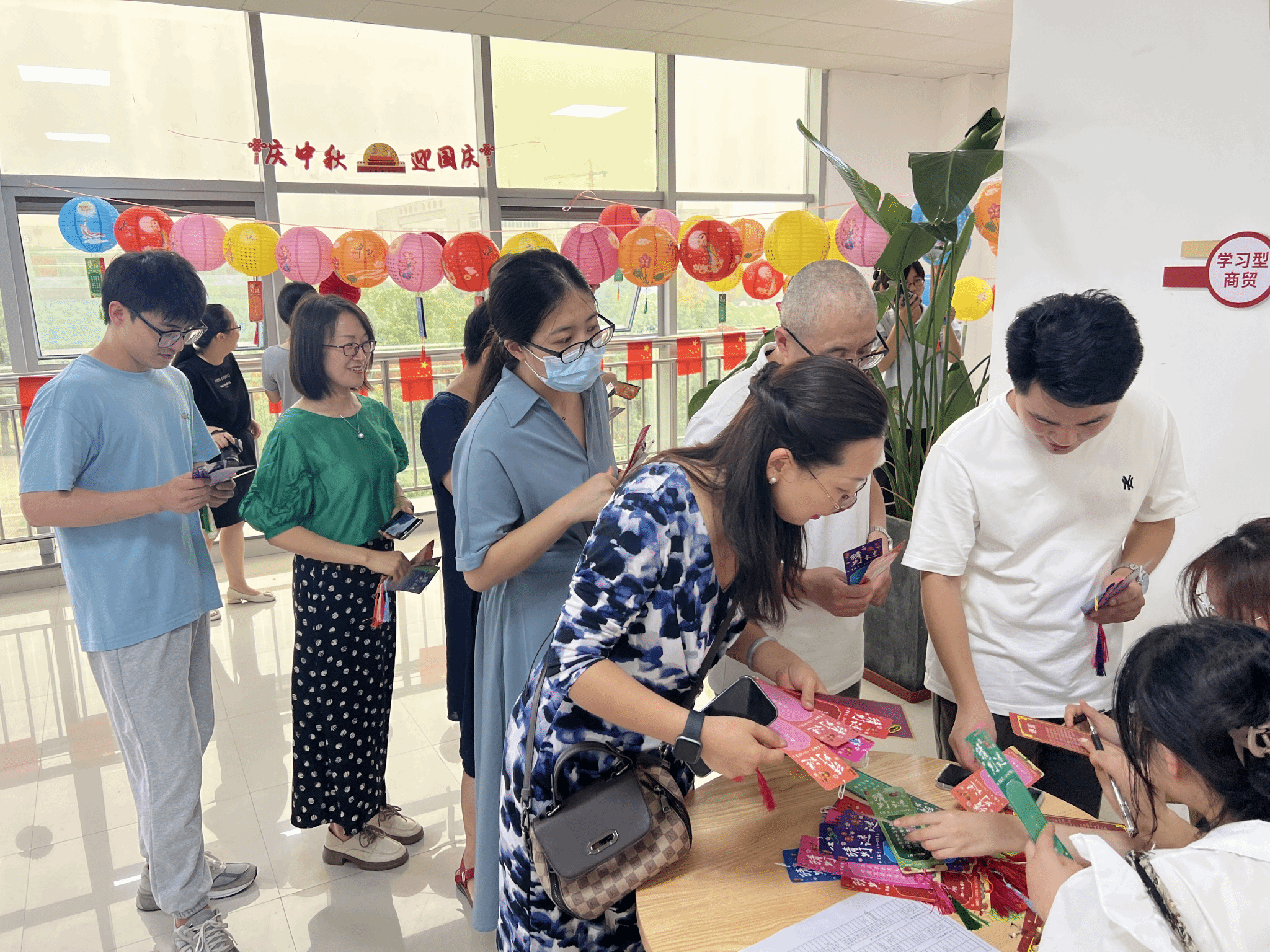家國同慶,好事成雙,為進一步弘揚中國傳統文化,營造熱烈喜慶的國慶氛圍,促進學院教職工的交流與學院的和諧發展,現代商貿學院于9月28日舉辦了面向全院教職工的慶中秋、迎國慶聯歡活動。本次活動內容豐富多彩,在院工會和院綜合辦的精心策劃下,開展了猜燈謎、月餅品嘗、兔子燈制作等活動。學院全體教職工積極參與,現場歡聲笑語不斷,氣氛熱烈而溫馨。